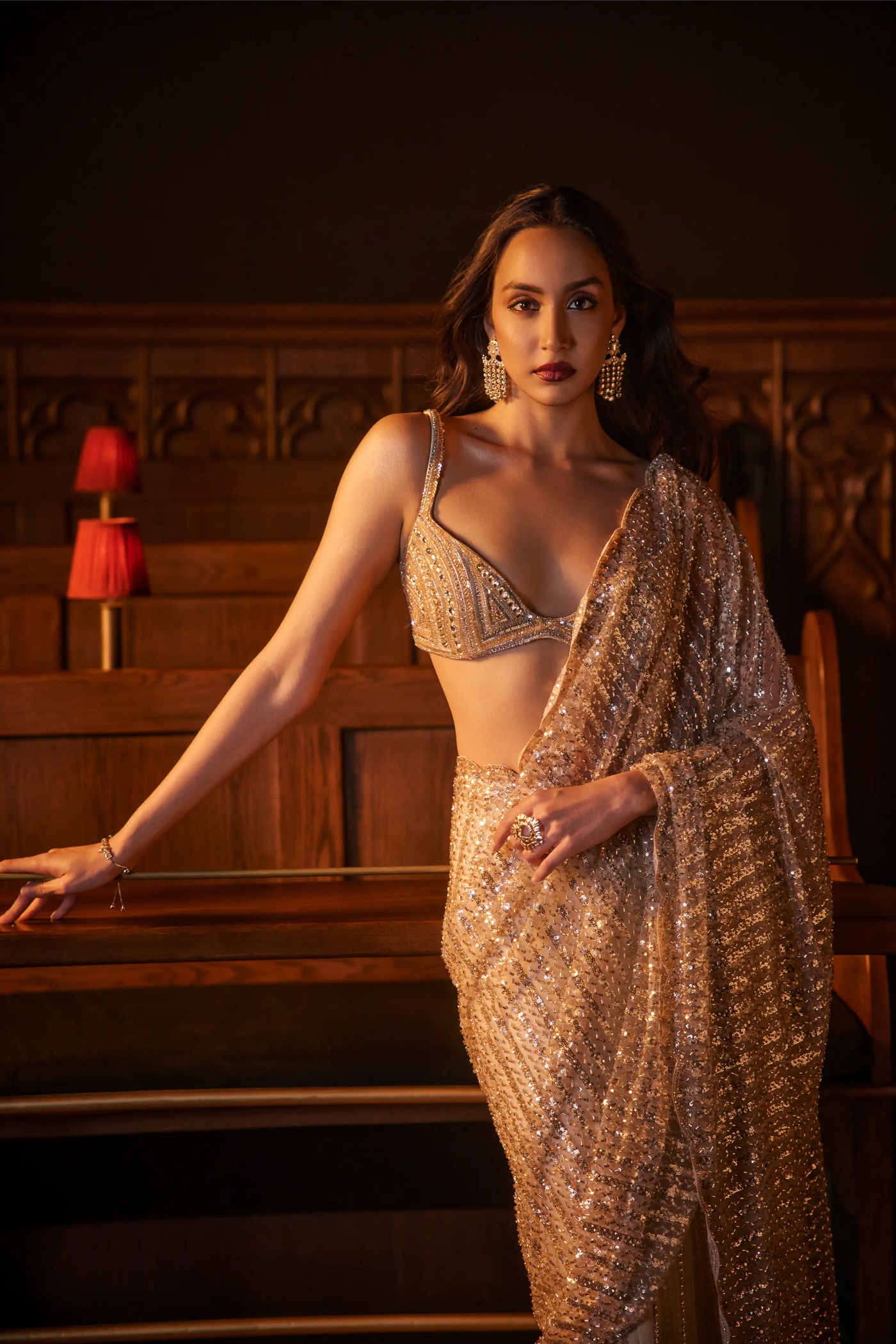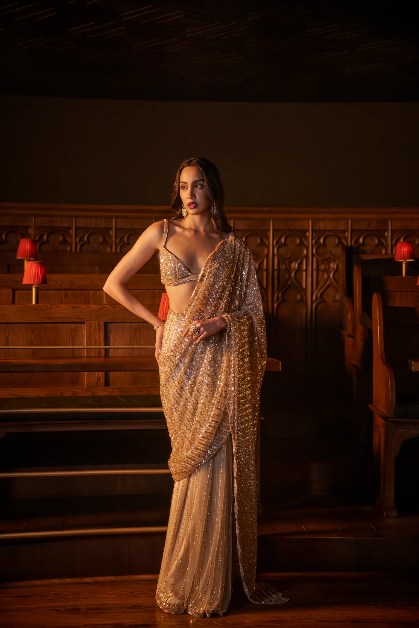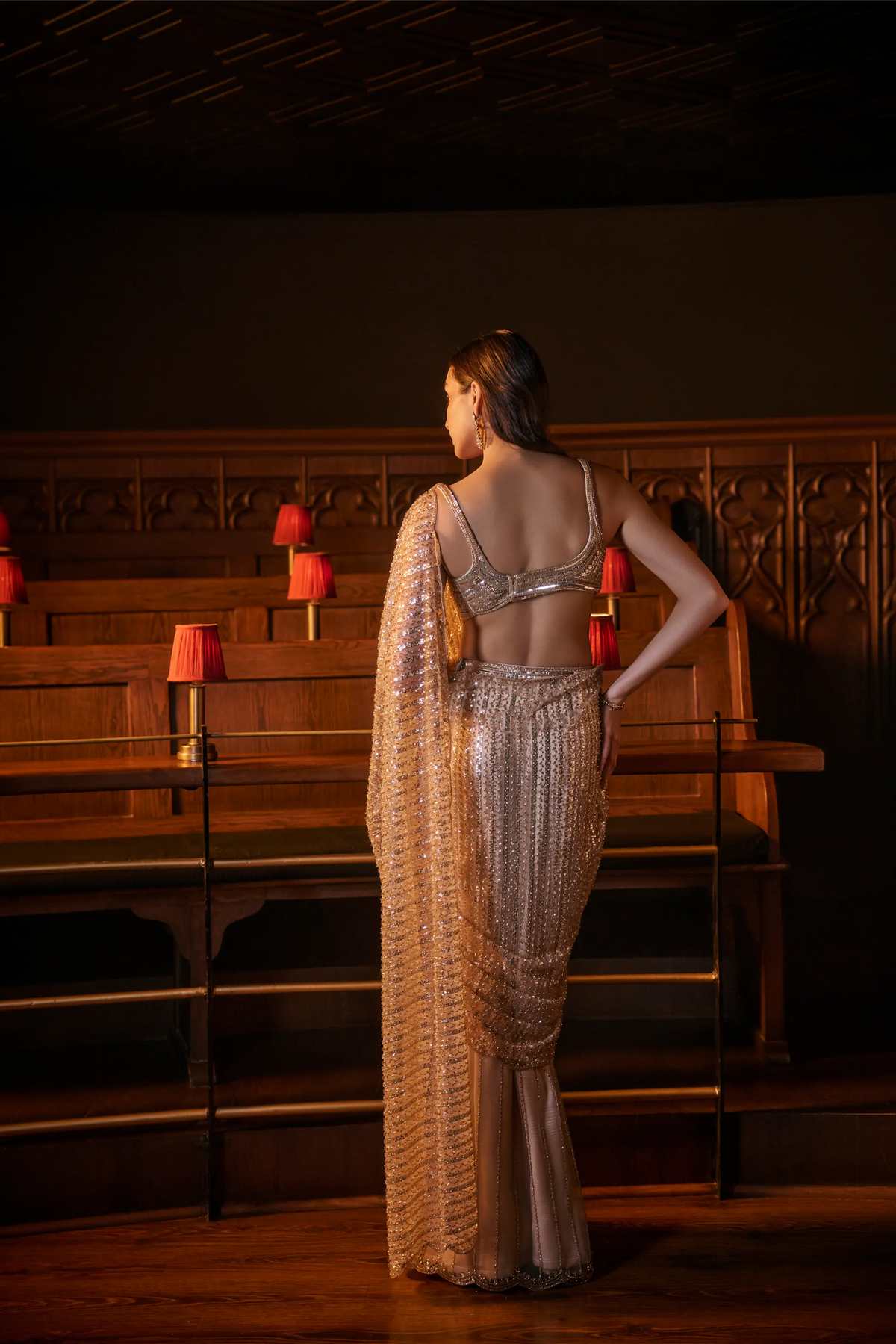 Work Type: Fully hand-embroidered blouse; sari embroidered with katdana, sequins and stone